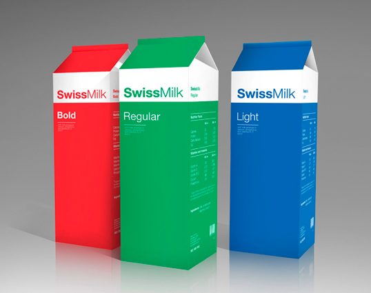 Este es un trabajo de un estudiante Arantxa Reus de España, buscando un estilo Suizo, por lo que su elección de la fuente Helvetica es perfecta, también le pondría Swiss milk a mi cereal cualquier día.