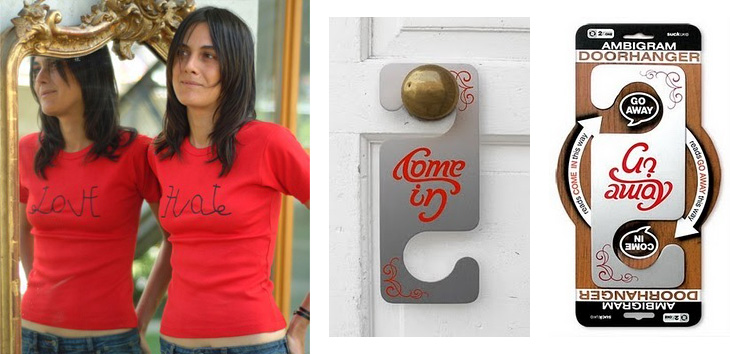 En los últimos días, me he roto la cabeza con un logotipo, cuando llego a mi mente… Ambigrama, estuve investigando en internet y todos parecían de bandas de metal ochenteras, con letras góticas y degradados en colores cálidos, nada agradables, pero me encontré con dos productos que me parecieron increíbles, además de ser ambigramas usan palabras de significados contradictorios. ¡Quiero ambos!