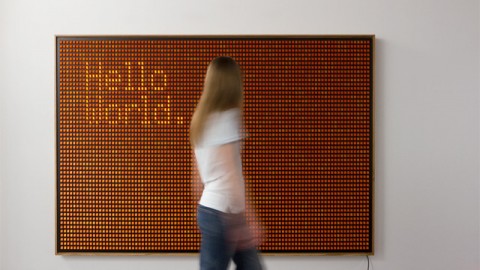 Esta es una idea genial de Valentin Ruhry 5,000 switches con luz anaranjada para crear mensajes, pienso en muchos lugares donde se vería genial.