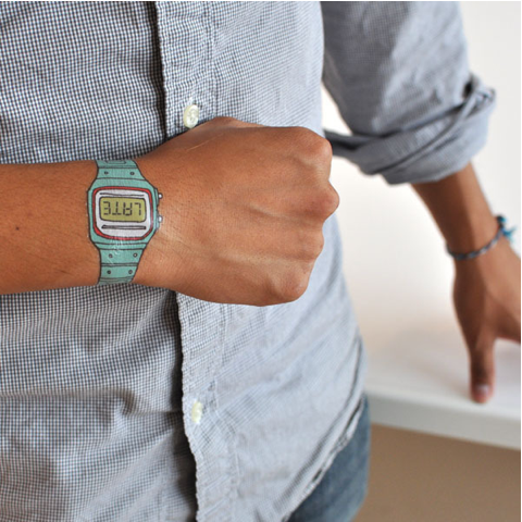 Para aquellos que la puntualidad no es su mejor cualidad, Tattly (si una página de ilustradores que vende tatuajes temporales) como Julia Rothman que nos trae es tatuaje temporal que te recuerda que vas tarde.
