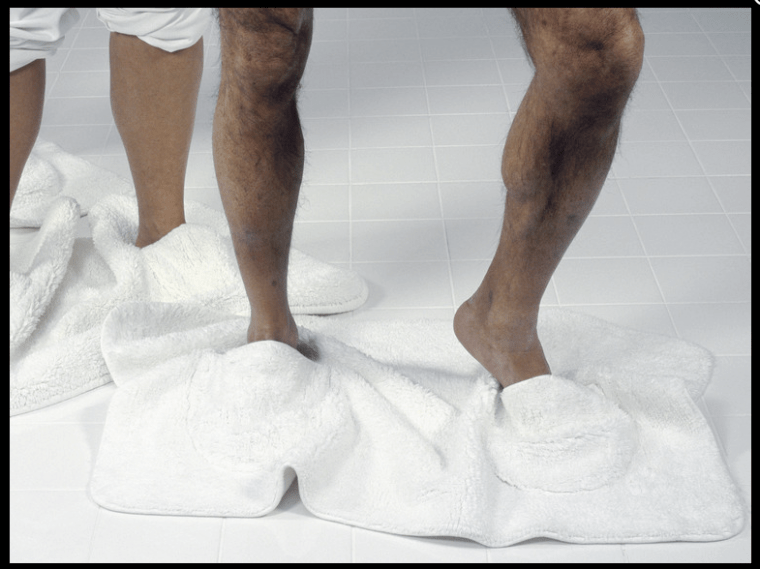La fusión de dos elementos ideales en el baño: Pantufas + Trapeador (alias jerga, tregona, mopa) que permite caminar con comodidad mientras se seca el piso, yo hubiese pensado que este era un invento de mi máma pero no, es del italiano Paolo Ulian