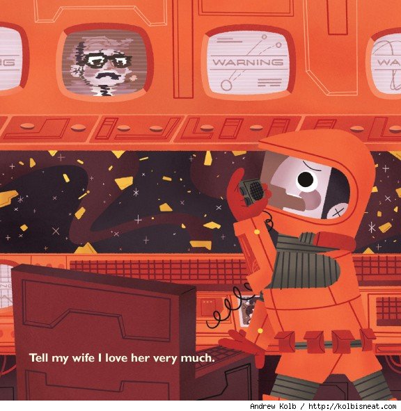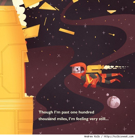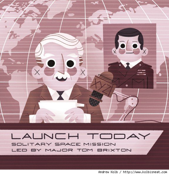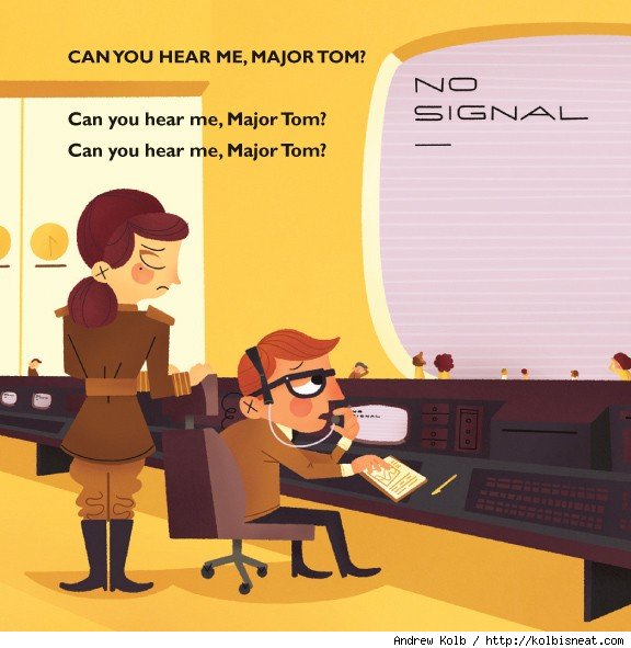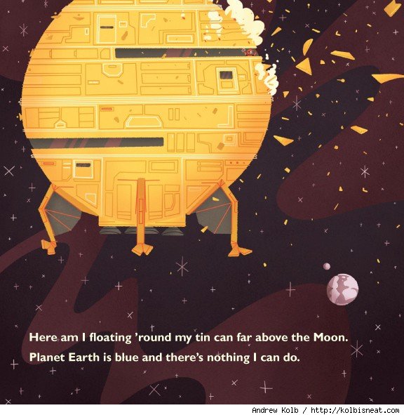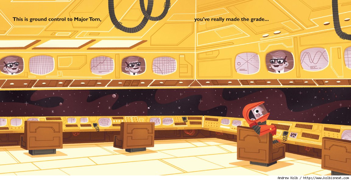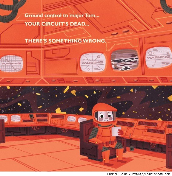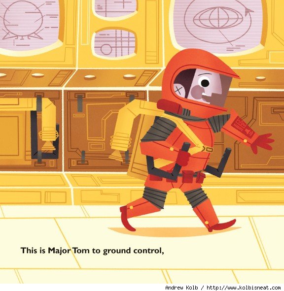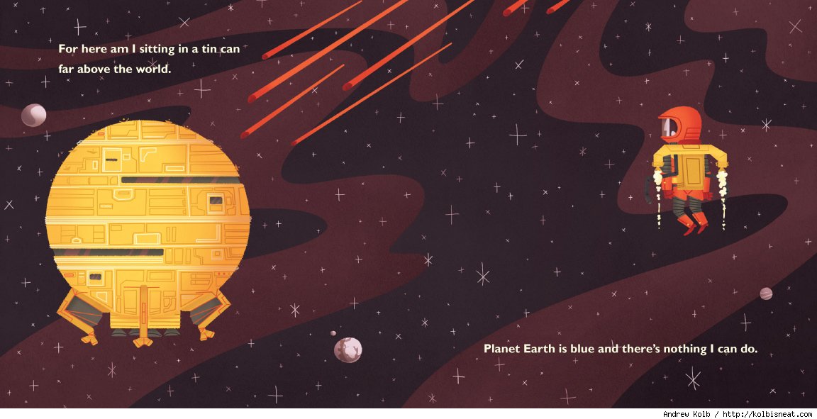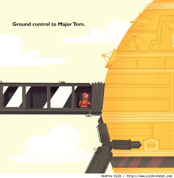 Andrew Kokb un ilustrador Canadiense inspirado en la famosa canción de David Bowie creo un libro sobre el Mayor Tom y su odisea espacial. Les recomiendo dar play al video e ir bajando al ritmo de la letra.