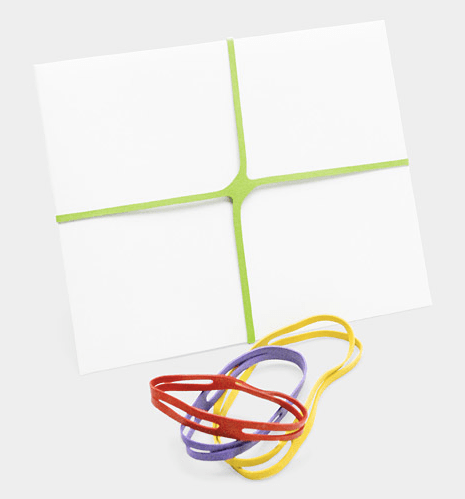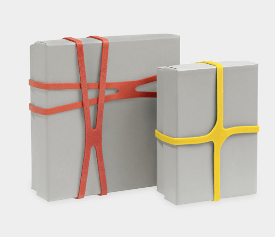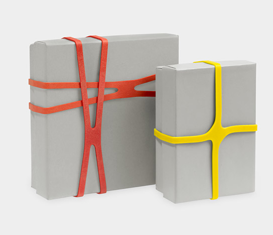 Estas ligas en forma de x pueden ser usadas para envolver regalos o agrupar papeles, se ven muy bien, son minimalistas y por supuesto las encuentran en el MOMA, donde fueron parte de la exposición en 2004.