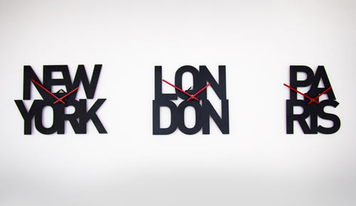 Debo confesar en el dashboard de mi computadora tengo varios relojes con otros usos horarios para saber la hora en la que estan algunos amigos y poder hablar con ellos. Así que estos relojes tipográficos de Goodwin + Goodwin me caerían muy bien.