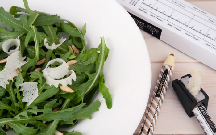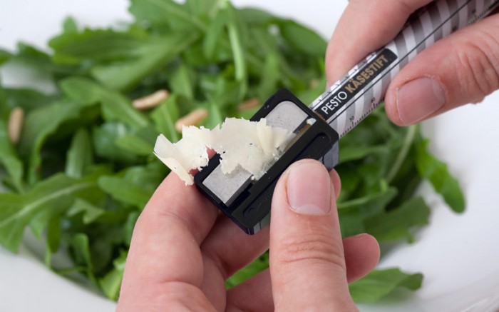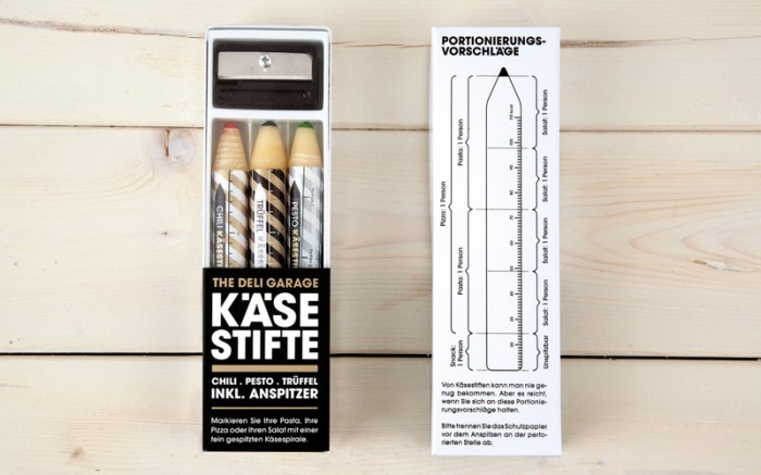 Increíble pero cierto, la agencia alemana Koll Rebbe creo este original empaque de edición limitada para el queso parmesano de The Deli Garage agregando una punta con un sabor extra que puede ser trufa, pesto o enchilado, además incluye una regla para medir las calorías que agregas a tu comida.