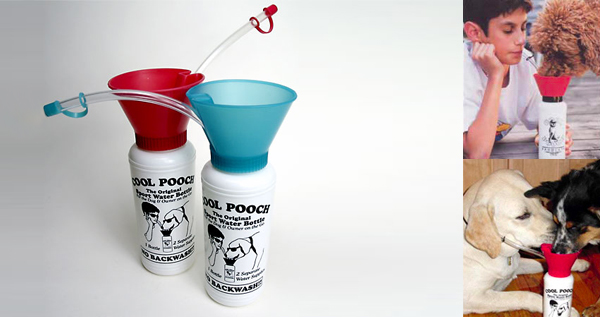 Para los amantes de los perros, los que comparten todo con ellos pero prefieren no beber un poco de saliva canina, aquí les tengo una solución muy practica, Cool Pooch Sport Bottle una botella pero dos tomas.