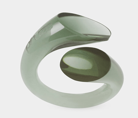 Otro gran ejemplo es este anillo hecho de vidrio de Orfeo Quagliata, yo tengo uno de estos desde hace unos años y es de mis piezas favoritas.