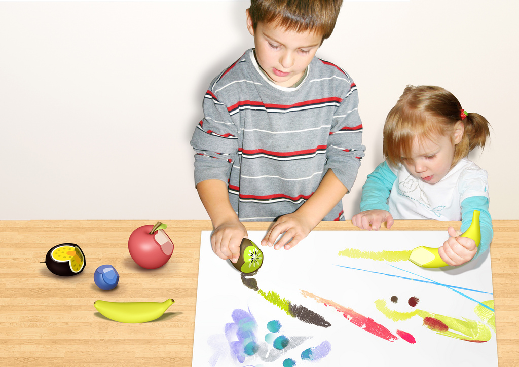 Estas no son la crayolas tradicionales. Estas son bellas frutas que no tienen una punta regular por lo que ayudan a los chicos a estimular el movimiento de los dedos y al llegar al interior de las frutas descubrirán los colores del interior. Su creador es Cheng-Tsung Feng.
