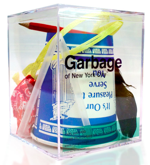 Este experimento de el artista autoctono de la ciudad Justin Gignac ha creado esta caja sellada con desechos, cada una vine marcada como escultura, numerada y fechada.